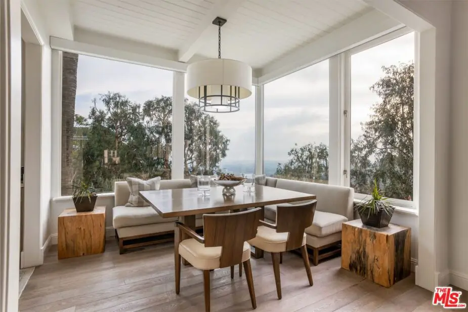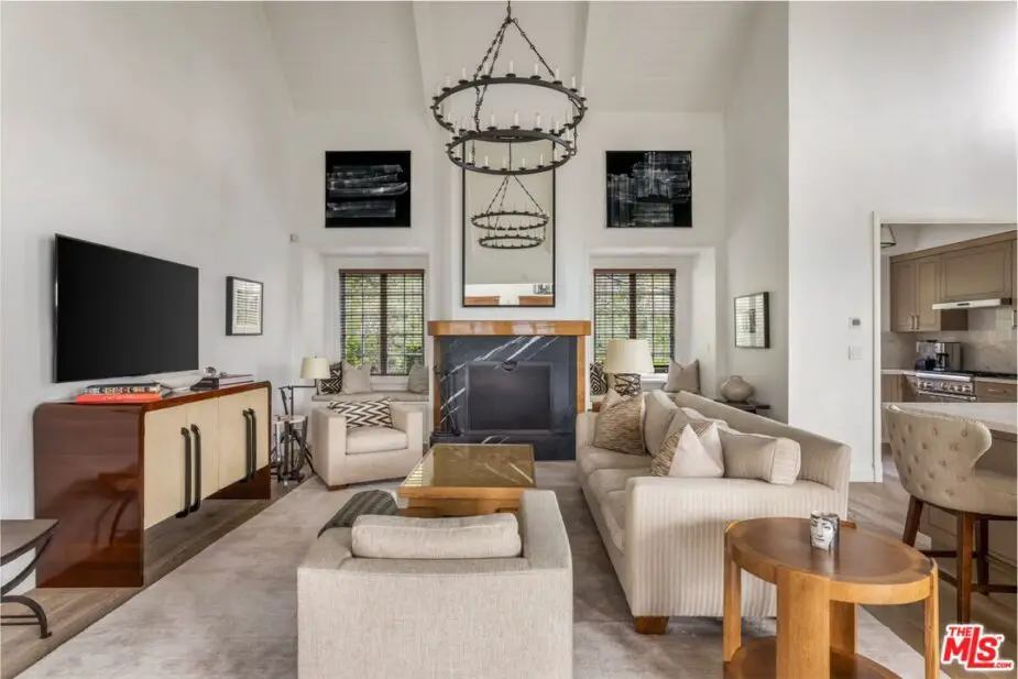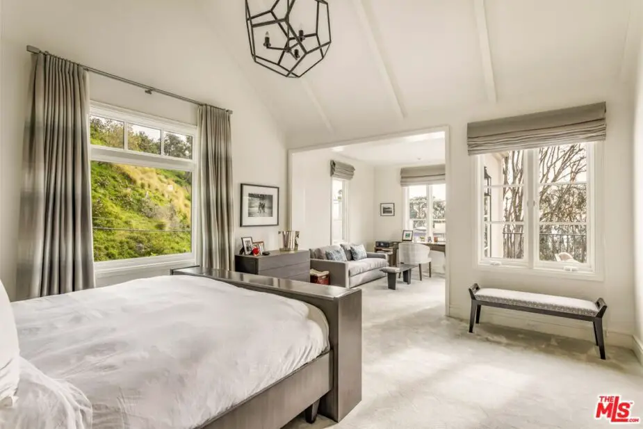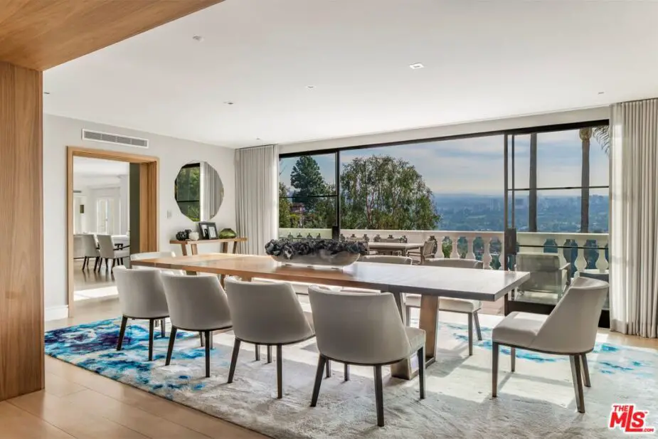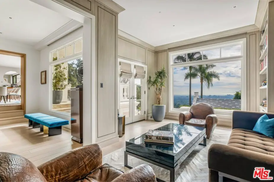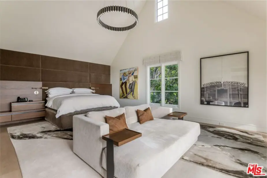 À l’intérieur, l’aménagement est tout aussi impressionnant que l’extérieur, avec de hauts plafonds voûtés, une vue panoramique et une décoration raffinée. Le domaine comprend trois structures distinctes : le bâtiment principal, un bâtiment dédié au cinéma et aux médias, ainsi qu’une maison d’invités entièrement équipée.