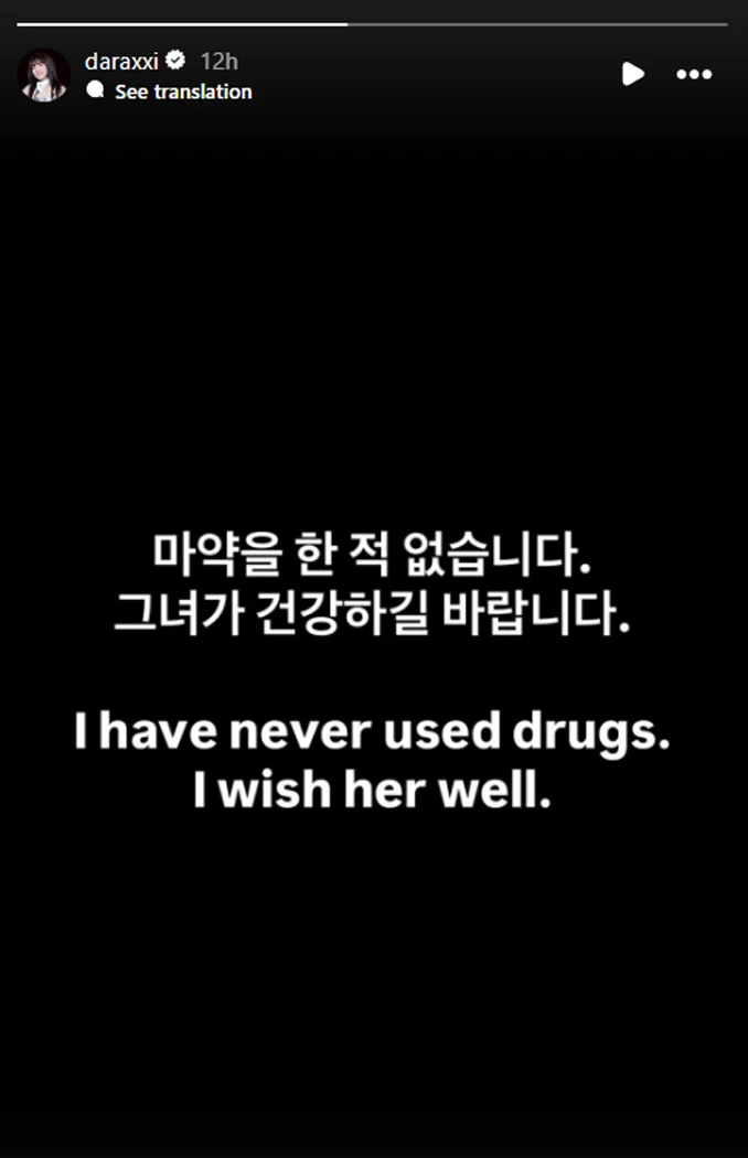 Pour rappel, tout a commencé la veille. Park Bom avait publié une longue mise au point sur ses réseaux pour revenir sur ses propres démêlés judiciaires liés à l’Adderall, ce médicament contre les troubles de l’attention qu’elle avait importé des États-Unis en 2010. Dans son message, elle avait mêlé le nom de Dara à l’affaire, laissant entendre que sa camarade avait tenté de la faire passer pour une toxicomane afin de couvrir sa propre consommation.