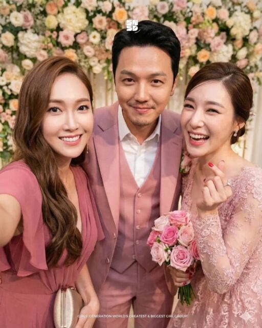 Plus tôt, une publication intitulée “Photos de mariage de Byun Yo Han et Tiffany” avait circulé sur une communauté en ligne. Les images montraient le couple vêtu de tenues de mariage roses, entouré de membres de Girls’ Generation, attirant immédiatement l’attention. On y retrouvait même Jessica Jung. Certains internautes ont critiqué l’esthétique jugée “ringarde”, avant que la rumeur ne soit clarifiée.