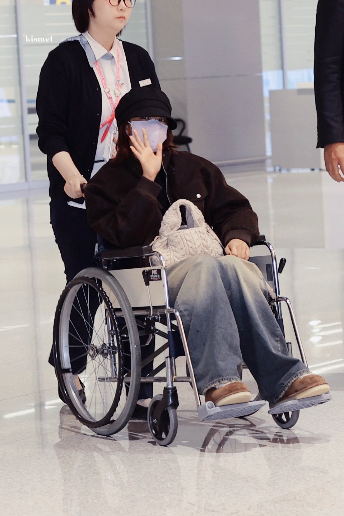 Après la cérémonie, Minnie a été aperçue à l’aéroport en fauteuil roulant, confirmant que la blessure rendait ses déplacements difficiles.