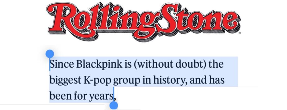 Le magazine américain Rolling Stone s’est retrouvé sous le feu des critiques des fans de BTS après avoir qualifié BLACKPINK de « plus grand groupe de K-POP de l’histoire » dans l’un de ses articles.