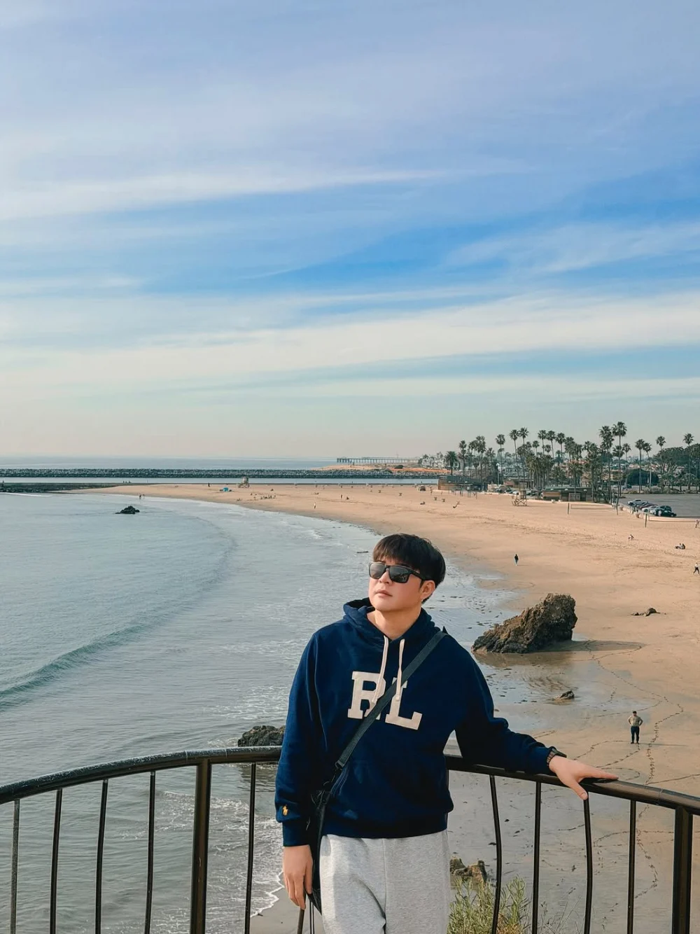 Les clichés ont été pris au bord de l’océan, près d’Irvine dans le comté d’Orange, et montrent Shindong profitant d’un moment de détente face à un paysage marin dégagé.