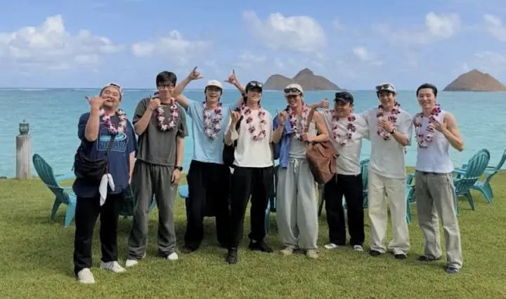 V (BTS) partage des photos de son voyage à Hawaï avec Park Seo Joon et la Wooga Fam